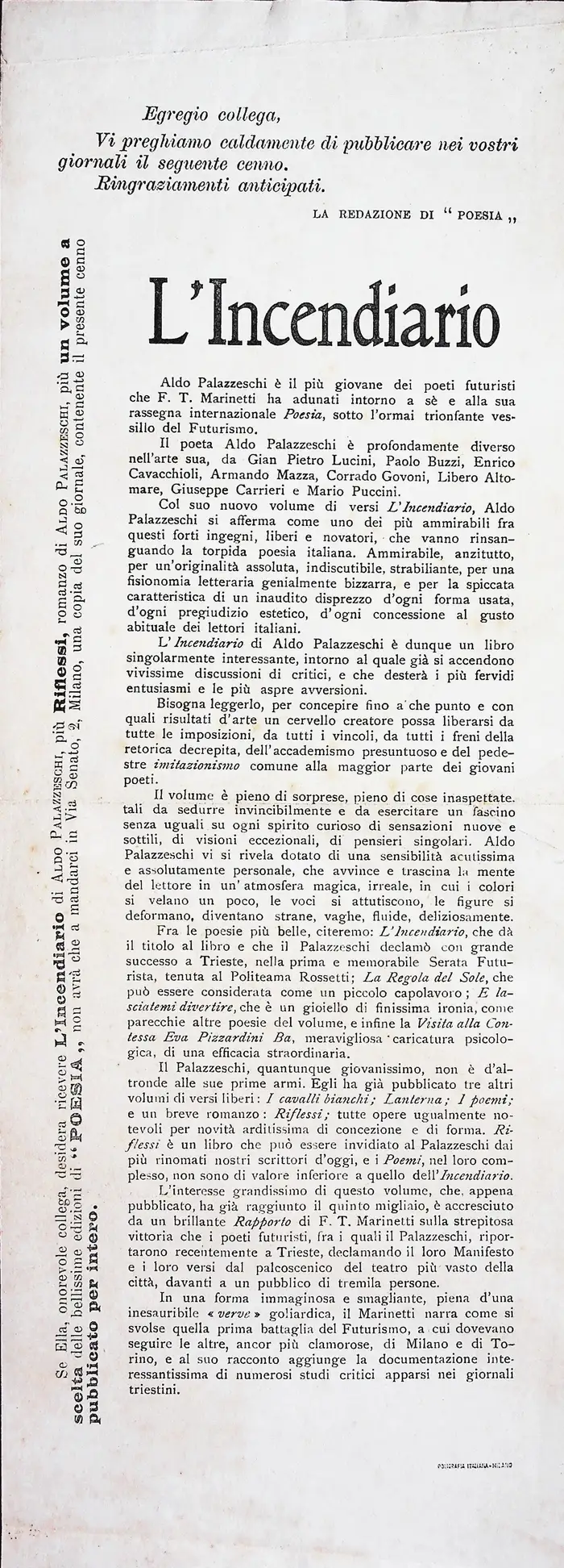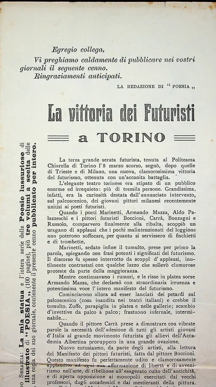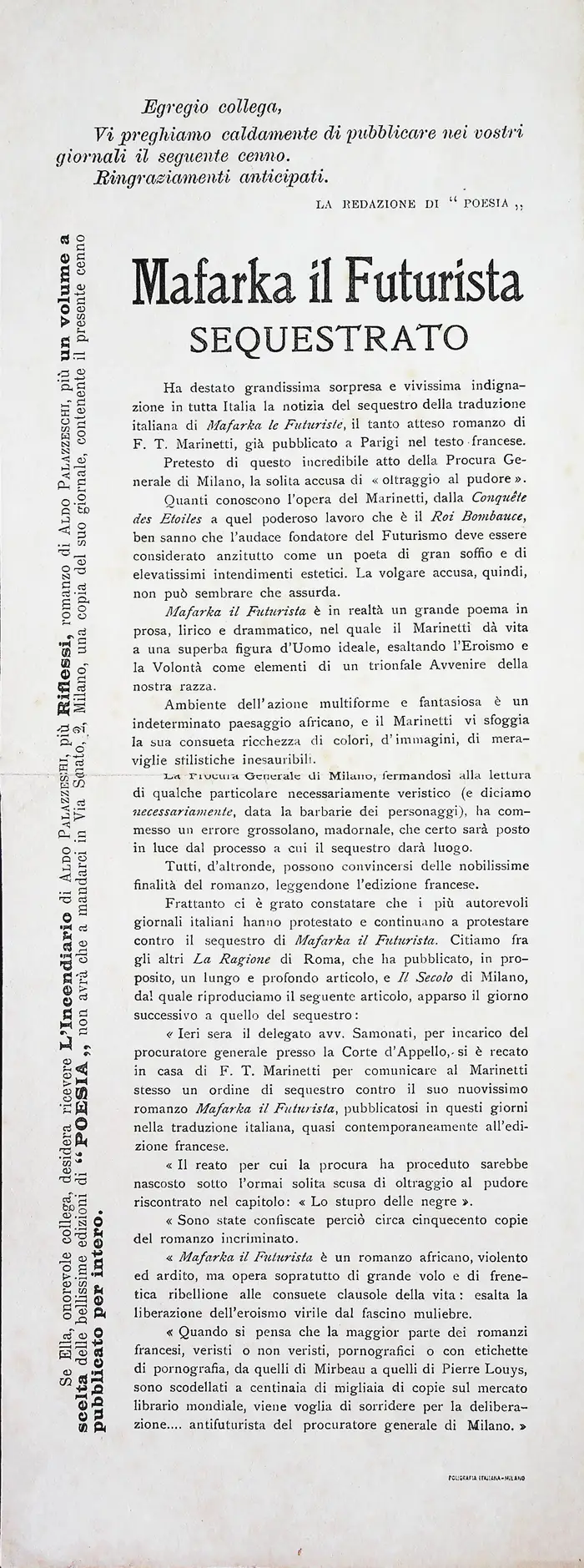 Manifesti fondativi, rottura col passato, velocità, dinamismo, rivoluzione tipografica.