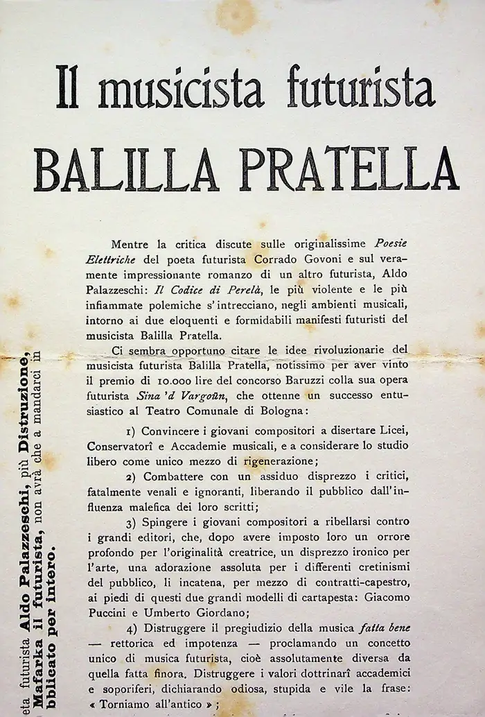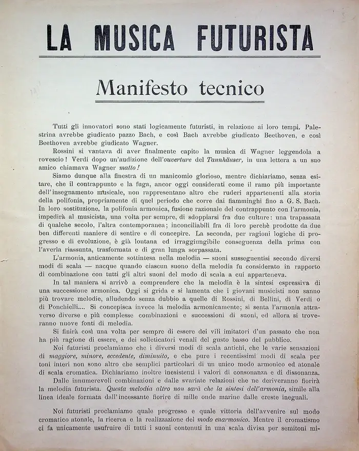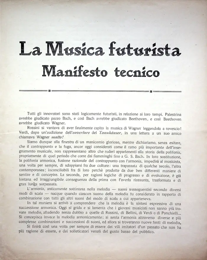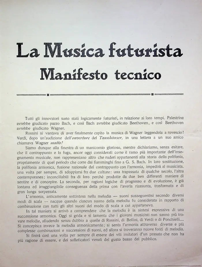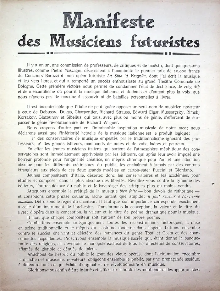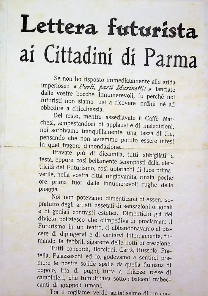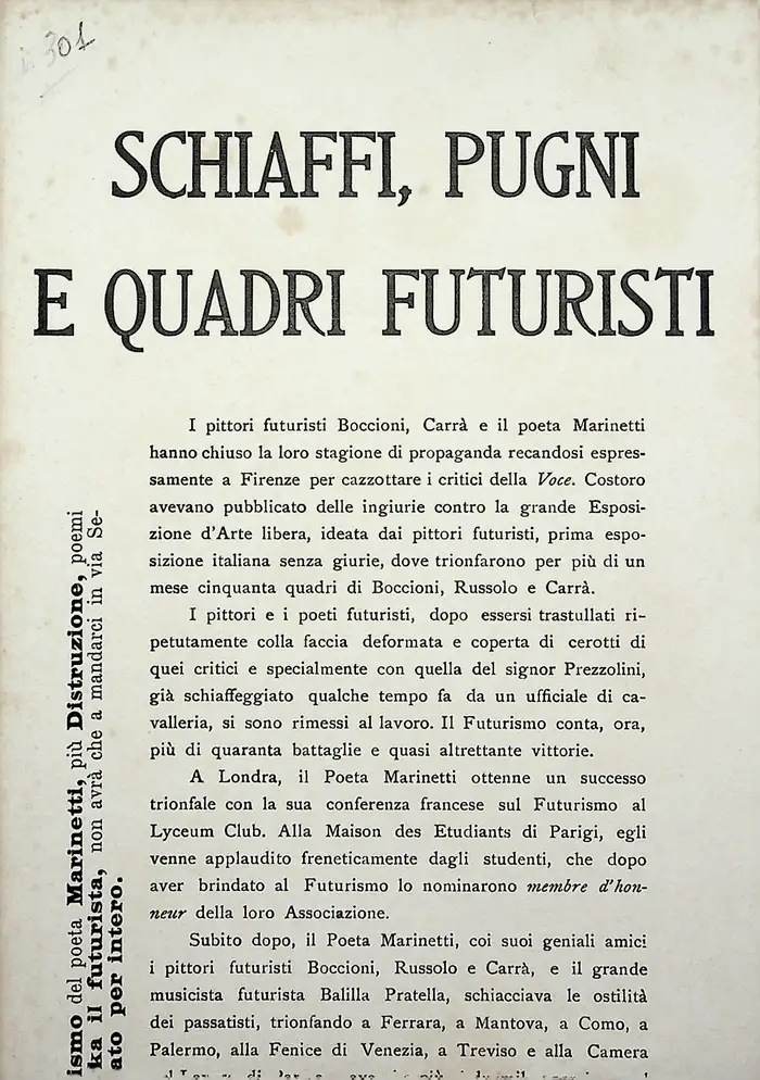 Manifesti fondativi, rottura col passato, velocità, dinamismo, rivoluzione tipografica.