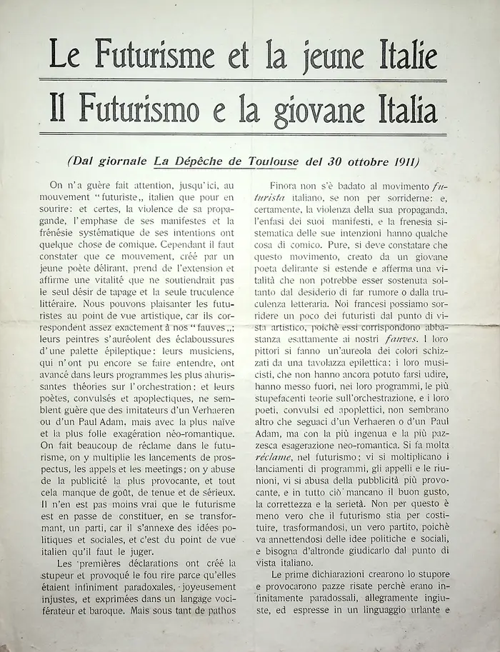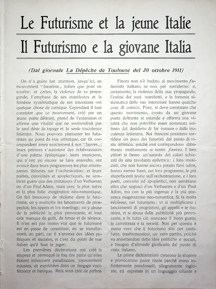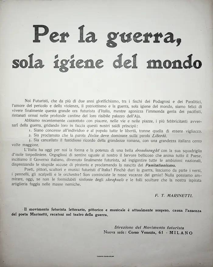 Manifesti fondativi, rottura col passato, velocità, dinamismo, rivoluzione tipografica.